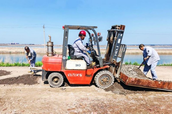 長蘆公司制鹵二工區第六泵站通往溴素有限公司溴素三廠的路段因強降雨沖刷,路面坑洼遍布、積水橫流,車輛、人員顛簸難行,既給職工上下班及原料運輸帶來極大不便,也埋下了安全隱患。群眾所盼,行動所向。7月18日,溴素三廠10余名黨員干部及骨干組建了突擊隊,備齊鐵鍬、砂石料、叉車等工具設備,對該路段進了修補。